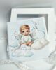 Wyjątkowa ręcznie wykonana kartka z okazji Chrztu Świętego – niepowtarzalna pamiątka, zachwyca swoją delikatnością i subtelną elegancją.